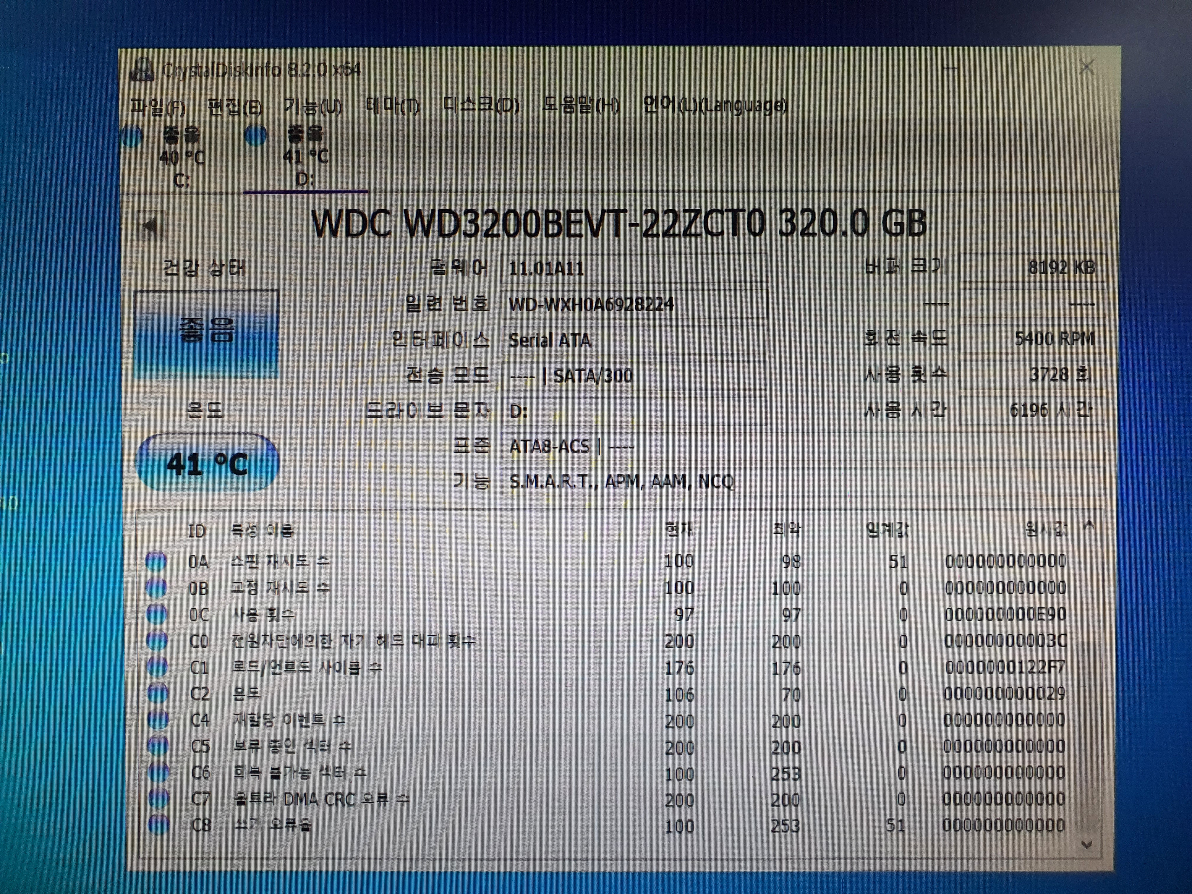 노트북용 WD 320G 하드디스크 작동영상 8883님